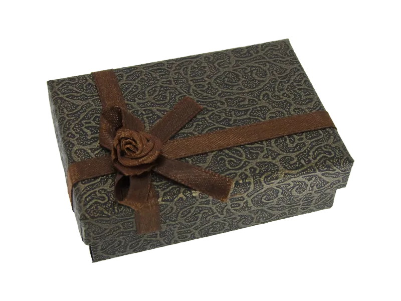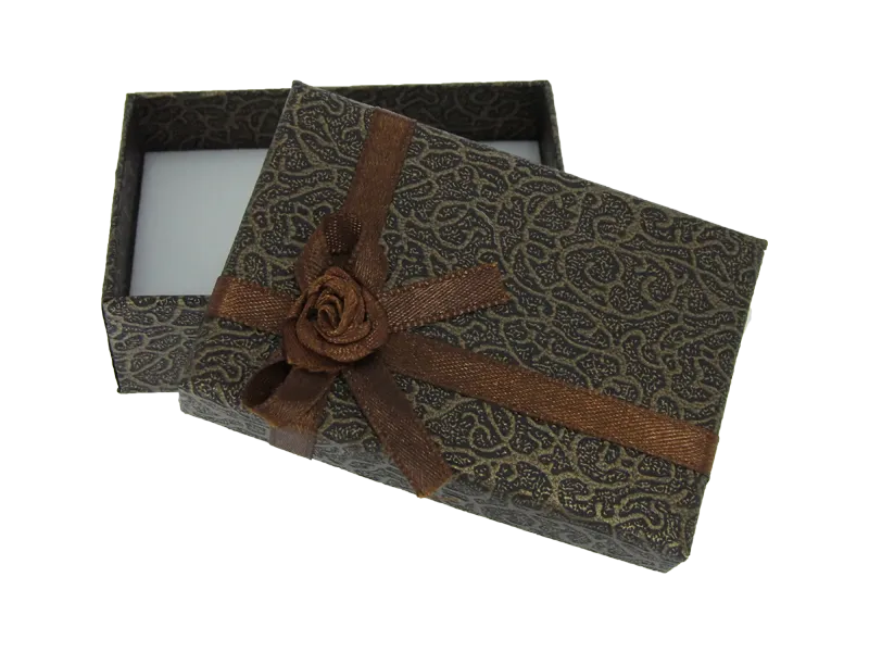Liebevoll hergestellte flache Ringbox, Ringschachtel oder Schmuckbox in braun mit Maserung. Die Box besteht aus einem stabilen Pappgehäuse und ist mit marmoriertem Papier bespannt. Der Deckel ist mit einer farblich abgestimmten Schleife verziert und verleiht der Box einen Geschenk-Charakter. Das Inlet der Box ist mit Schaumstoff ausgepolstert und bietet Platz für einen Ring bis zu 24 mm Durchmesser. Die Box kann aber auch für Anhänger, Ketten und ähnlichen Schmuck genutzt werden.