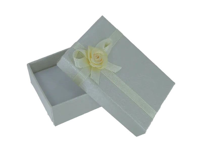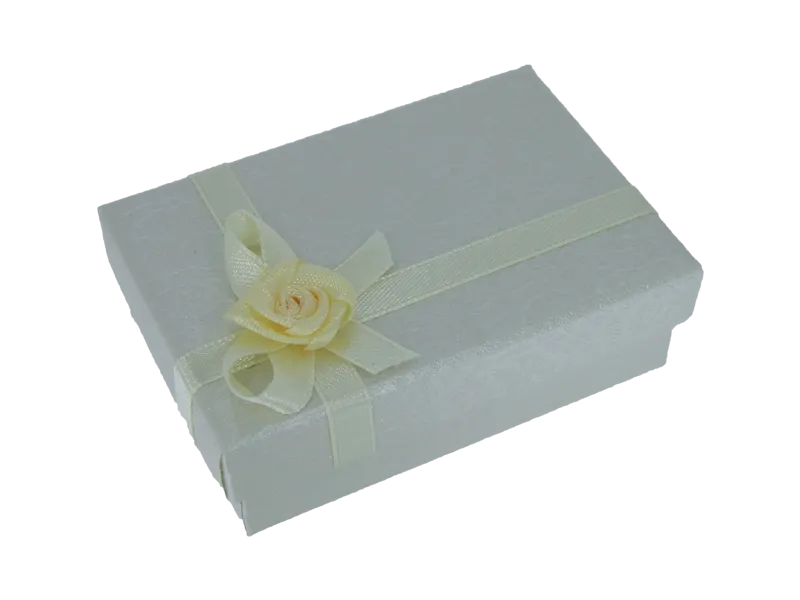 Liebevoll hergestellte flache Ringbox, Ringschachtel oder Schmuckbox in weiss mit Maserung. Die Box besteht aus einem stabilen Pappgehäuse und ist mit marmoriertem Papier bespannt. Der Deckel ist mit einer farblich abgestimmten Schleife verziert und verleiht der Box einen Geschenk-Charakter. Das Inlet der Box ist mit Schaumstoff ausgepolstert und bietet Platz für einen Ring bis zu 24 mm Durchmesser. Die Box kann aber auch für Anhänger, Ketten und ähnlichen Schmuck genutzt werden.