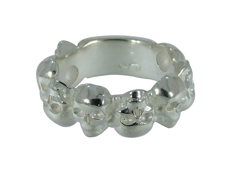 Ausgefallener Ring im Totenkopf Design mit 8 Skulls - perfekt für ausgefallene Typen! Wundervoll detailliert gearbeitet aus der Schmiede von Design MR, gefertigt aus massivem Silver (mit Stempel). Ist Ihre Größe hier nicht angegeben, bitte bei dem 10 Skulls Ring nachschauen.