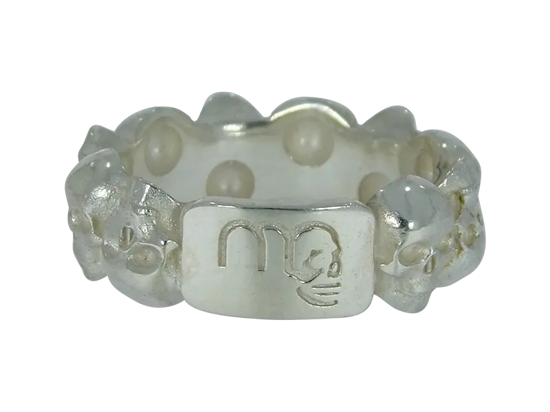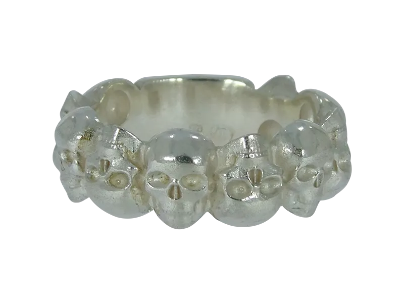 Ausgefallener Ring im Totenkopf Design mit 10 Skulls - perfekt für ausgefallene Typen! Wundervoll detailliert gearbeitet aus der Schmiede von Design MR, gefertigt aus massivem Silver (mit Stempel). Ist Ihre Größe hier nicht angegeben, bitte bei dem 8 Skulls Ring nachschauen.